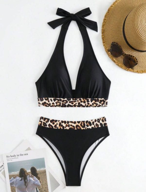 با این بیکینی پلنگی رونیا، استایل ساحلی و فانتزی خودت رو کامل کن! 🌊🐆 طراحی خاص با ترکیب رنگ مشکی و نوار پلنگی باعث میشه ظاهرت جسورانه، شیک و متفاوت باشه.