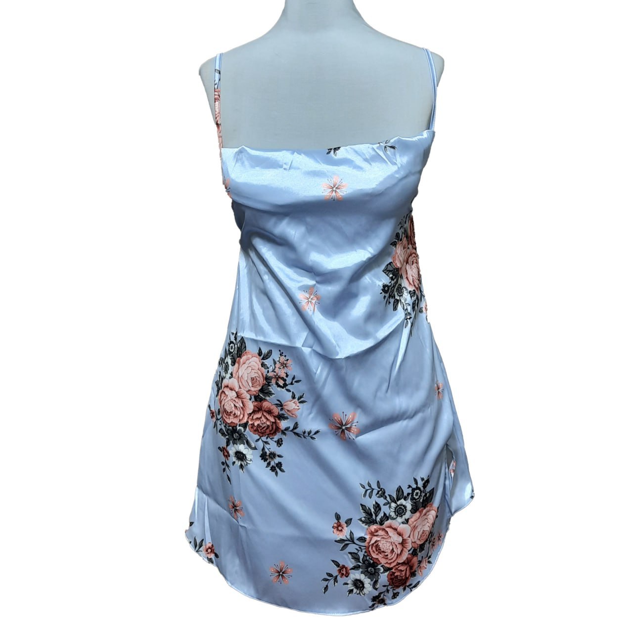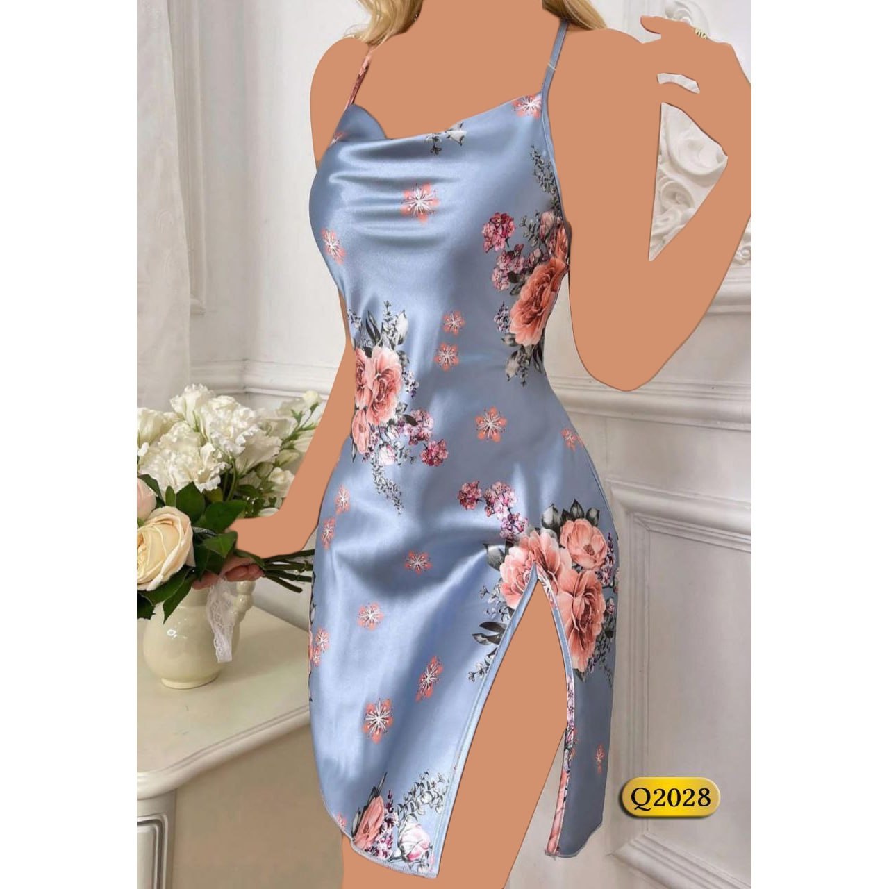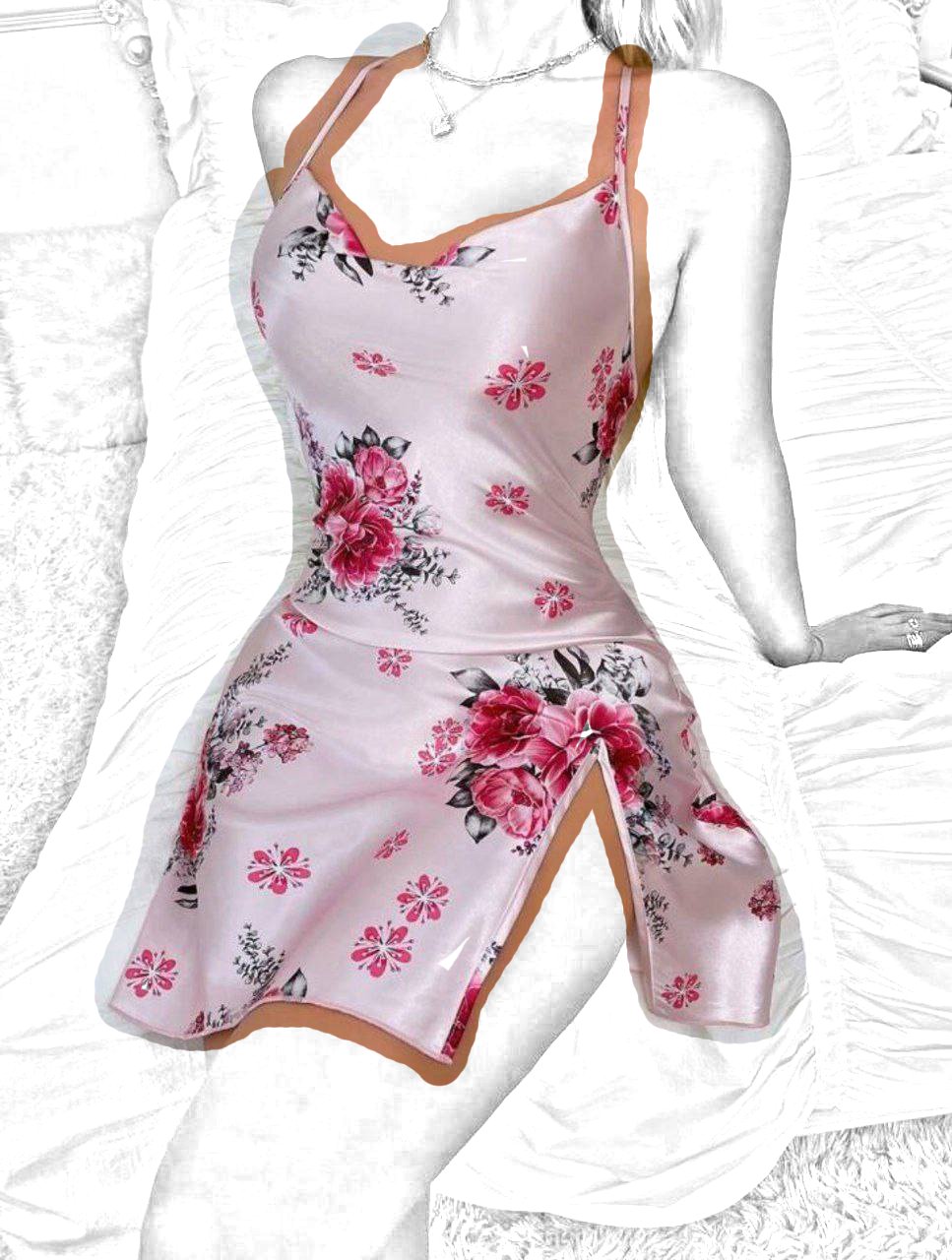 این لباس خواب ساتن گلدار با طراحی مینیمال و پارچه براقش، حس لطافت و جذابیت رو همزمان منتقل میکنه ✨