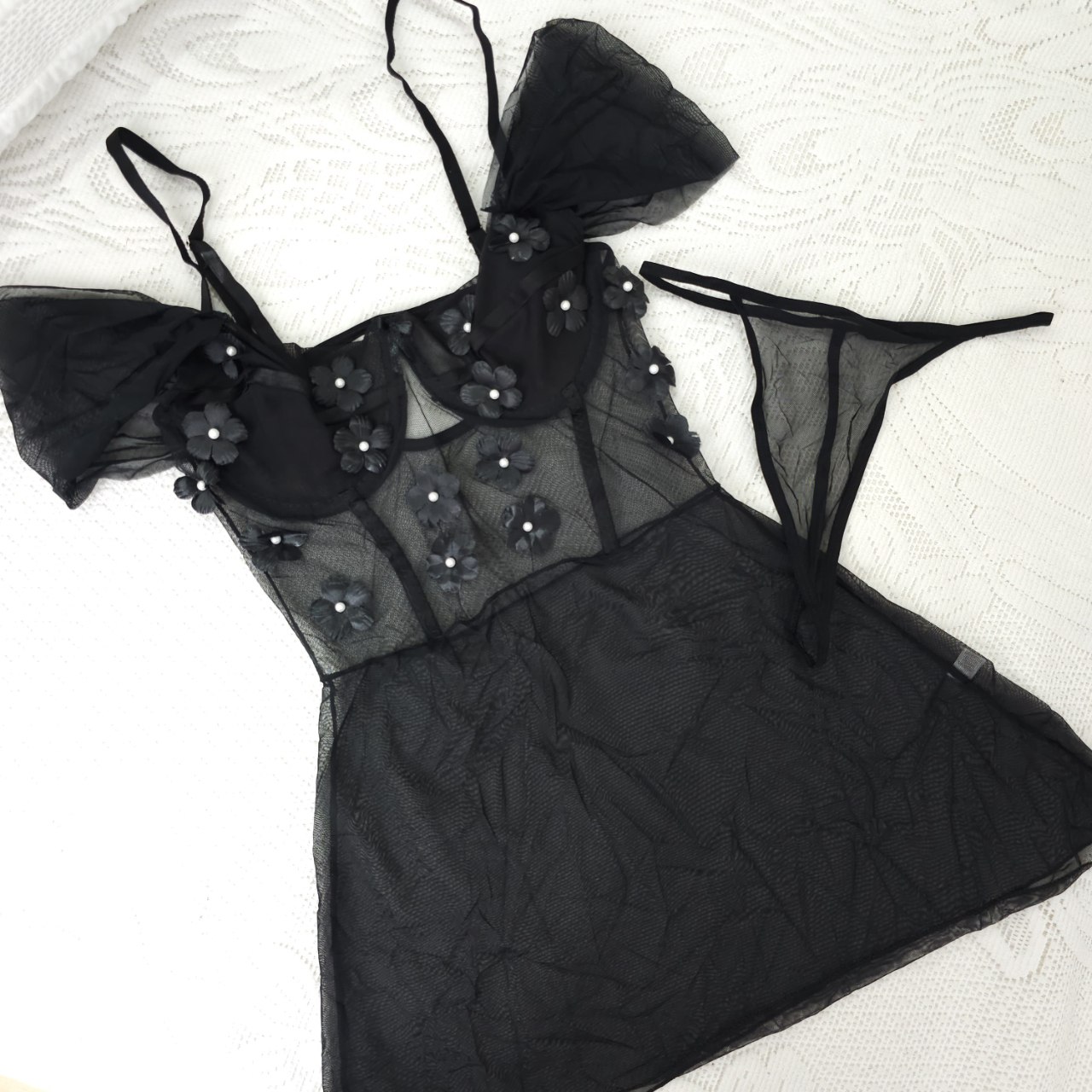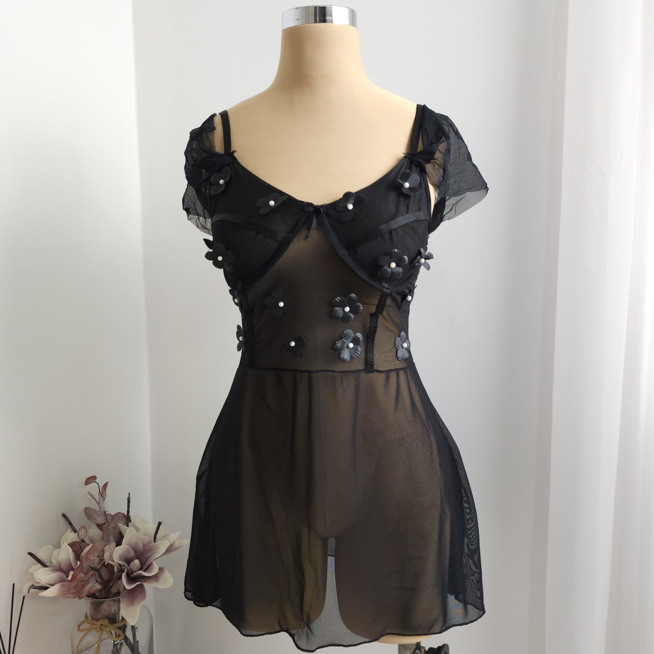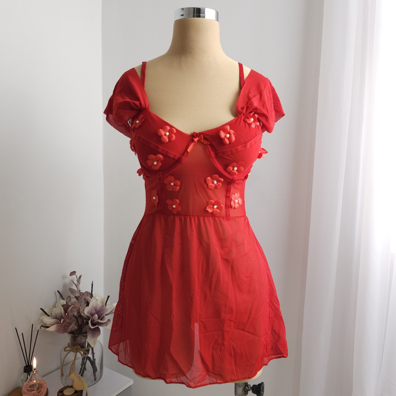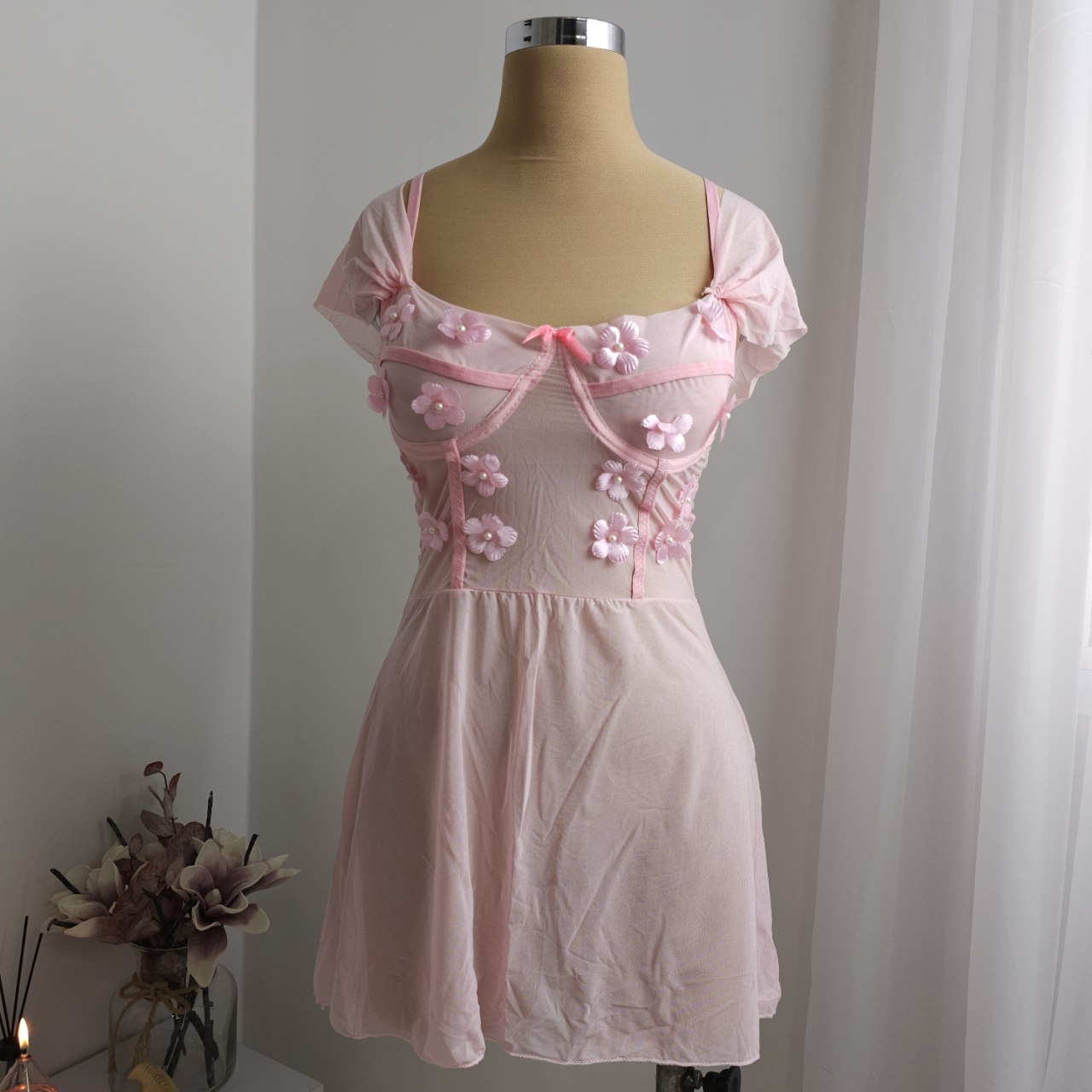 گلهای برجستهی دوختهشده روی قسمت بالاتنه در کنار پارچهی حریر نرم و دامنی سبک، استایلی رویایی و خاص به تن میده 🌸